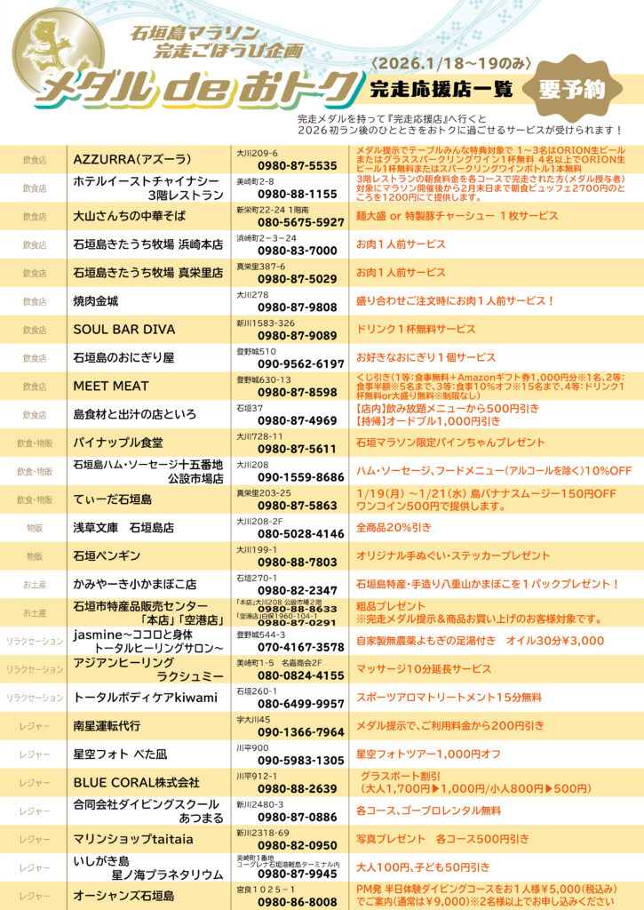第23回石垣島マラソンの完走メダルを持って完走応援店へ行くと