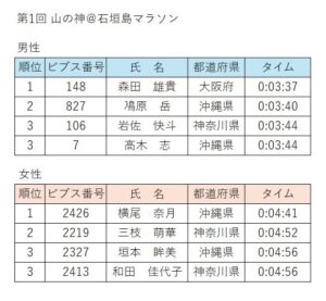 山の神@石垣島マラソンの結果が発表されました。